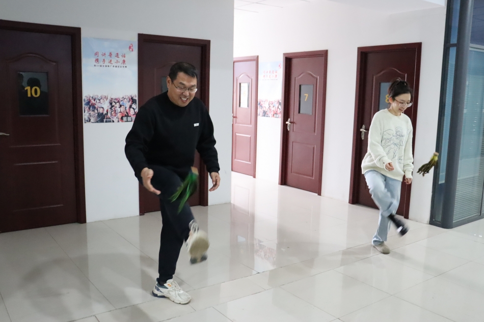 为丰富教职工课余文化生活,增强教师身体素质,营造健康向上的公司氛围,我分工会分两个校区开展比赛,惠济区于11月24日中午13:00在办公区域开展;航空港区于11月26日中午13:30在A2-1楼成功举办了教职工单踢毽子比赛。惠济区校区由于天气的原因,有室外改成室内举行,但是也不影响大家的热情。30多名教职工踊跃参与,以轻盈的身姿、灵动的技巧展开了一场充满活力与欢笑的竞技盛宴,最终比赛在热烈的气氛中圆满落幕。
